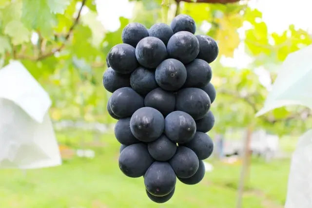 皮は黒に近い紫で高級感があり、酸味と甘みのバランスが良く、濃厚な味わいが楽しめます。